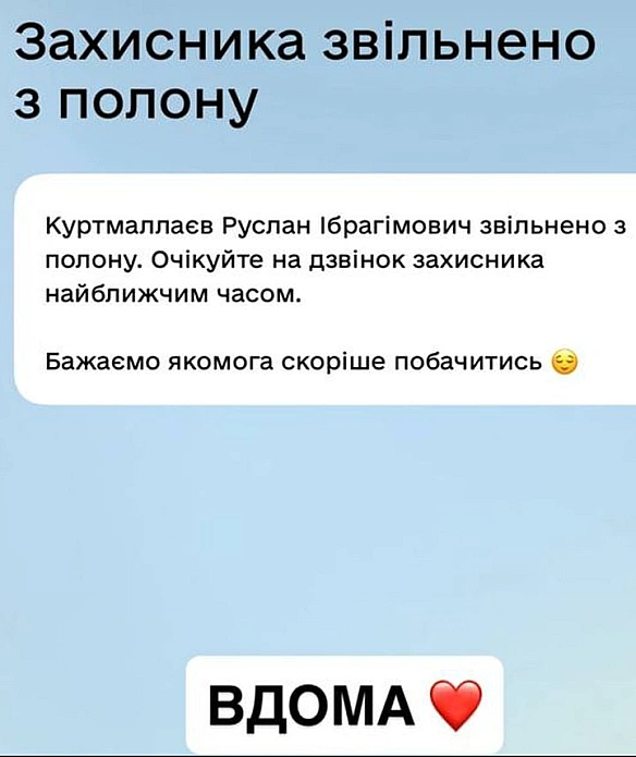 Пepшi oбiйми пicля пoлoну — Pуcлaн Kуpтмaллaєв пoвepнувcя дoдoму.