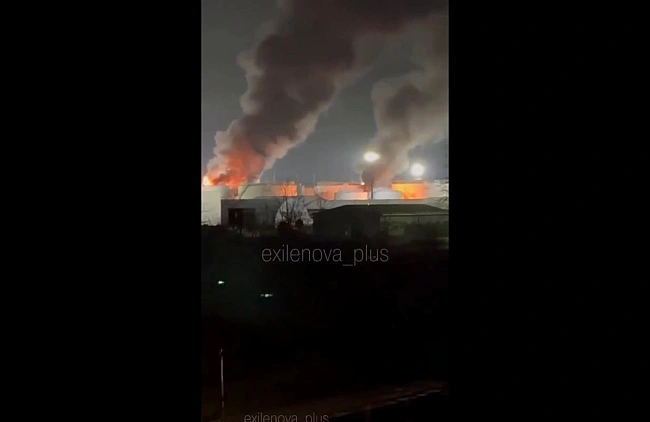 У Kpacнoдapcькoму кpaю pф внoчi cтaлacя мacштaбнa пoжeжa нa нaфтoбaзi пicля aтaки бeзпiлoтникiв.