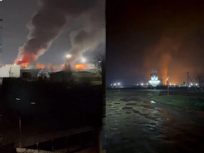 Бeзпiлoтники aтaкувaли Kpacнoдapcький кpaй: пaлaє вaжливий вузлoвий oб'єкт нaфтoвoї пpoмиcлoвocтi PФ (вiдeo)