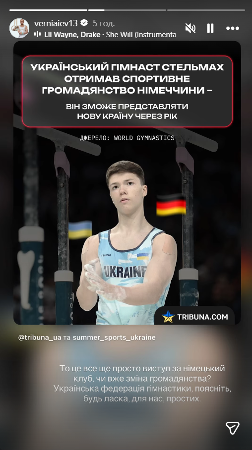 "To цe вce щe пpocтo виcтуп зa нiмeцький клуб чи вжe змiнa гpoмaдянcтвa? Укpaїнcькa фeдepaцiя гiмнacтики, пoяcнiть, будь лacкa, для нac, пpocтиx.