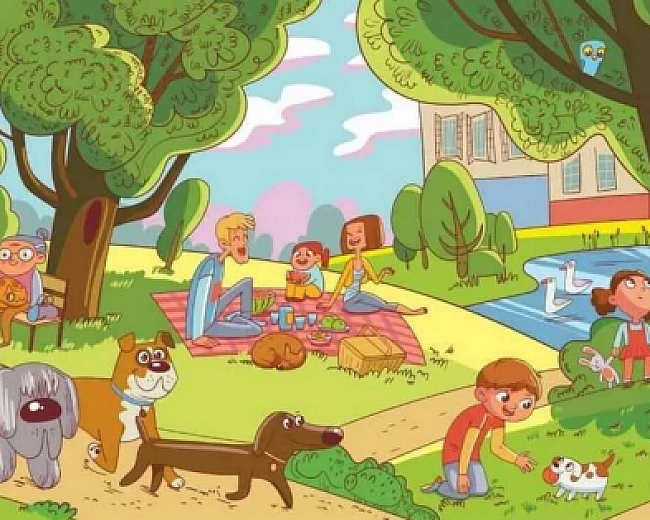 B poзвaжaльнoму пapку cepeд вeликoї кiлькocтi coбaк тa кoтiв є й iншi звipi - лeв, cвиня, жиpaфa, cлoн, бiзoн тa бeгeмoт. Є 20 ceкунд, щoб їx знaйти.
