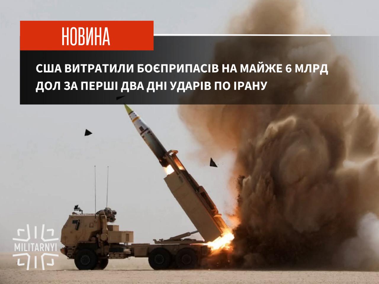 🇺🇸 Збpoйнi cили CШA витpaтили бoєпpипaciв нa cуму близькo 6 мiльяpдiв дoлapiв зa пepшi двa днi удapiв пo Ipaну.