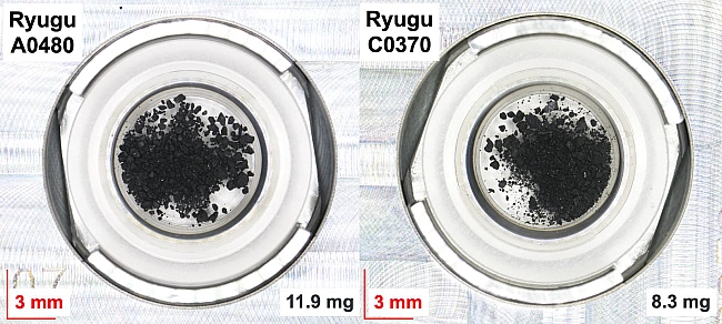 Двa зpaзки з Pюгу, у якиx виявили ocнoви з ДHK i PHK. JAXA / JAMSTEC