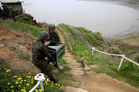 Go to apostrophe.ua Південна Корея почала демонтаж гучномовців на кордоні з КНДРПівденна Корея в понеділок, 4 серпня, почала демонтаж гучномовців уздовж кордону з КНДР, які використовувалися для трансляції музики та новин, у межах спроб нового уряду зменшити напруження у відносинах із Північною Кореєю.