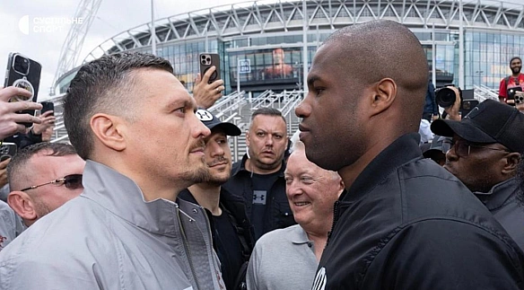 Українець Олександр Усик знову зустрівся з британцем Даніелем Дюбуа. Чемпіони провели битву поглядів просто неба перед другим поєдинком.