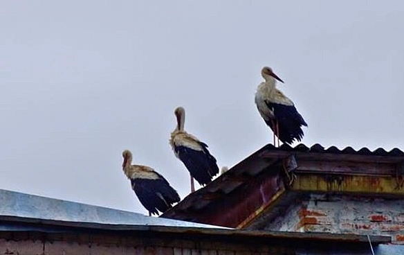 Шість птахів сіли відпочити на дах адміністративної будівлі біля меморіалу, що свідчить про можливі зміни в локальній популяції.