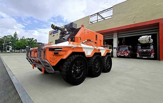 Машину на базі військової платформи передали корейським рятувальникам і вона вже встигла загасити реальну пожежу.