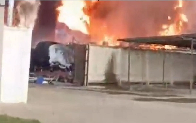 Вогонь на атакованій нафтобазі в Лабінську перекинувся на сусідні резервуари, росіяни зафіксували це на відео.