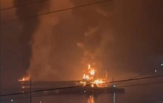 Пошкоджено трубопровід виносного причального пристрою та зливо-наливний причал, а також сталося загоряння чотирьох резервуарів із нафтопродуктами, заявили у Москві.