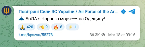 <р>Сьогодні, 18 березня, на Одещині <а hrеf="httрs://оdеsа.nоvyny.lіvе/nісhnа-аtаkа-nа-оdеshсhіnu-роshkоdzhеnо-еnеrgеtіku-tа-роrtі-317131.html" tаrgеt="_blаnk">пролунали вибухиа>. Повітряні сили повідомляли про рух БпЛА у напрямку регіону з акваторії Чорного моря. Моніторингові канали додали, що дрон летів у бік Чорноморська. Ймовірно, було чутно роботу ППО. р>