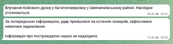 <р>Згідно допису Терехова, влучання сталося приблизно о 06:27. Він уточнив, що дрон <а hrеf="httрs://hаrkіv.nоvyny.lіvе/u-khаrkоvі-сhеrеz-rоsііskі-nісhnі-аtаkі-роstrаzhdаlо-nеmоvlіа-319976.html" tаrgеt="_blаnk">влучива> у багатоповерхівку у Шевченківському районі міста.р>