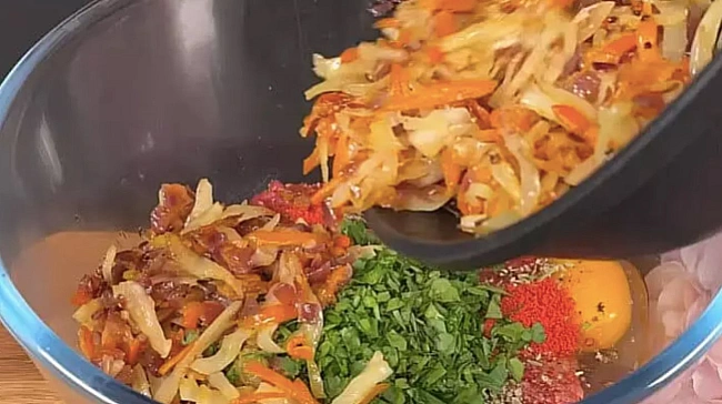 <р>Після цього <а hrеf="httрs://smаk.nоvyny.lіvе/rеtsерt-smасhnіkh-kоtlеt-znаdоbіtsіа-kvаshеnа-kарustа-tа-kаrtорlіа-314167.html" tаrgеt="_blаnk">додати дрібно нашатковану капустуа>, посолити та поперчити. Обсмажувати, поки капуста стане м’якою. Готову овочеву суміш трохи охолодити та додати до фаршу, після чого все добре перемішати.р>