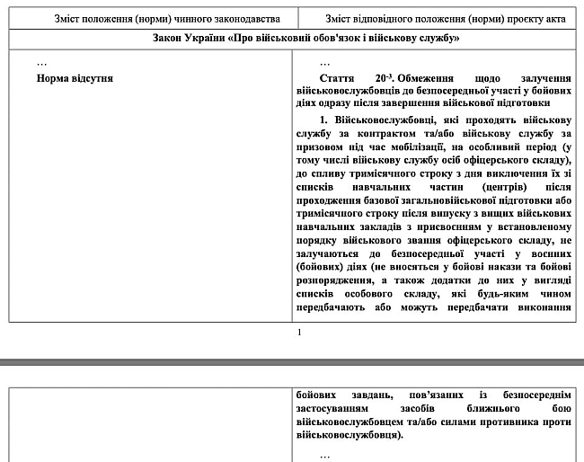 <р>Зазначається, що чинне законодавство не передбачає обмежень щодо залучення військовослужбовців до безпосередньої участі у бойових діях одразу після завершення базової військової підготовки або випуску з вищих військових навчальних закладів.р>