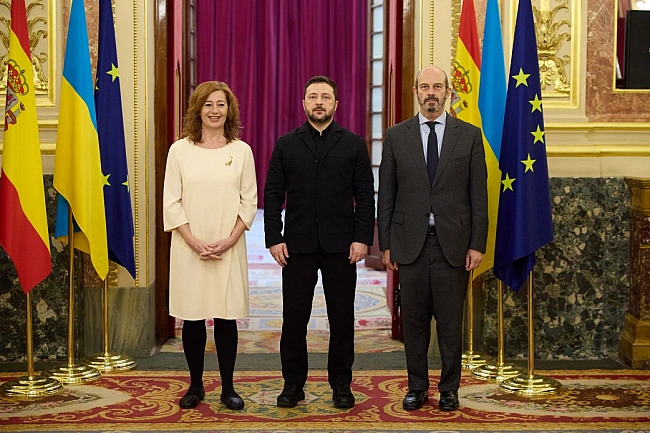 <р>Оновлено 18:00. Український лідер зустрівся з парламентарями Іспанії під проводом очільниці Конгресу депутатів Франсіни Арменголь та голови Сенату Педро Роллана. Наскрізною темою розмови була підтримка оборони та посилення української ППО. Також Зеленський подякував палатам Генеральних кортесів за допомогу Україні та відзначив внесок Іспанії у РURL.р>