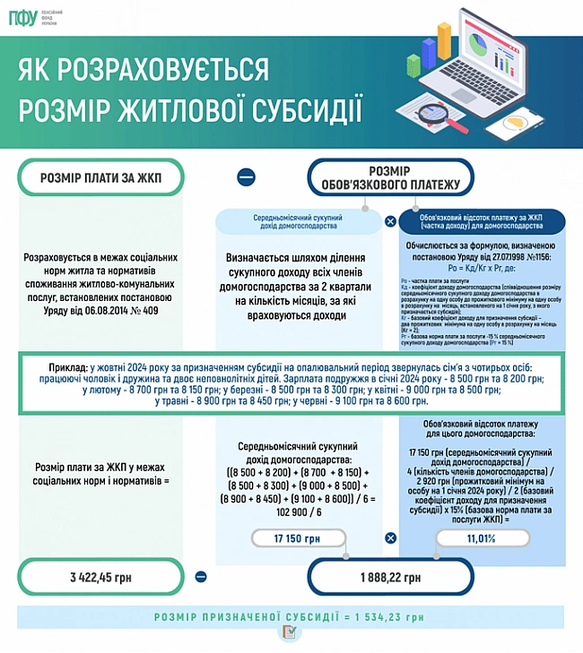 Приклад розрахунку розміру субсидії. Фото: Скриншот/Пенсійний фонд України
