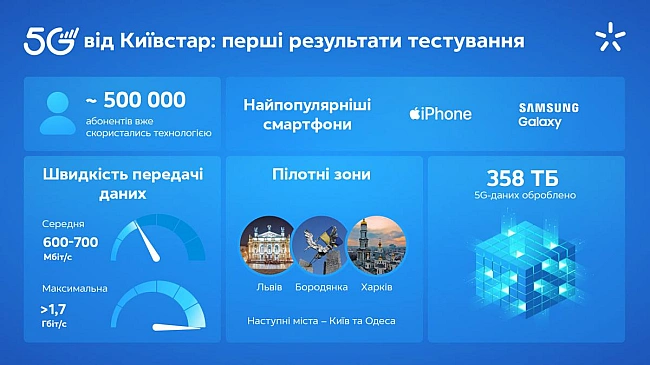 Київстар аналізує результати пілотного тестування 5G: майже пів мільйона абонентів уже скористалися технологією